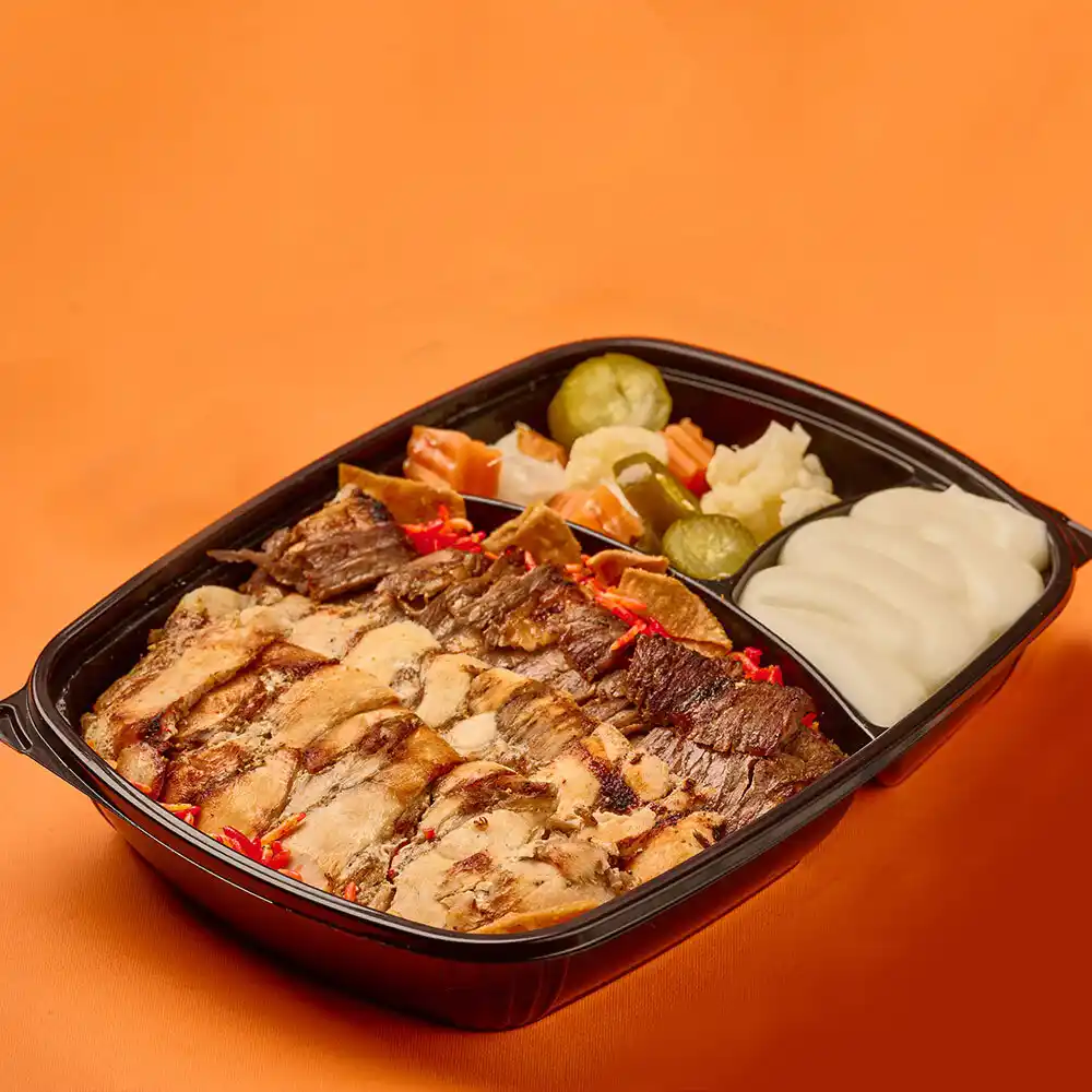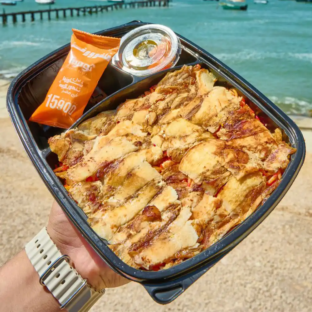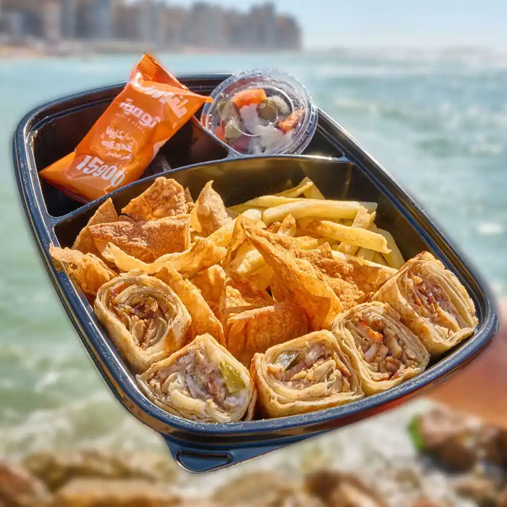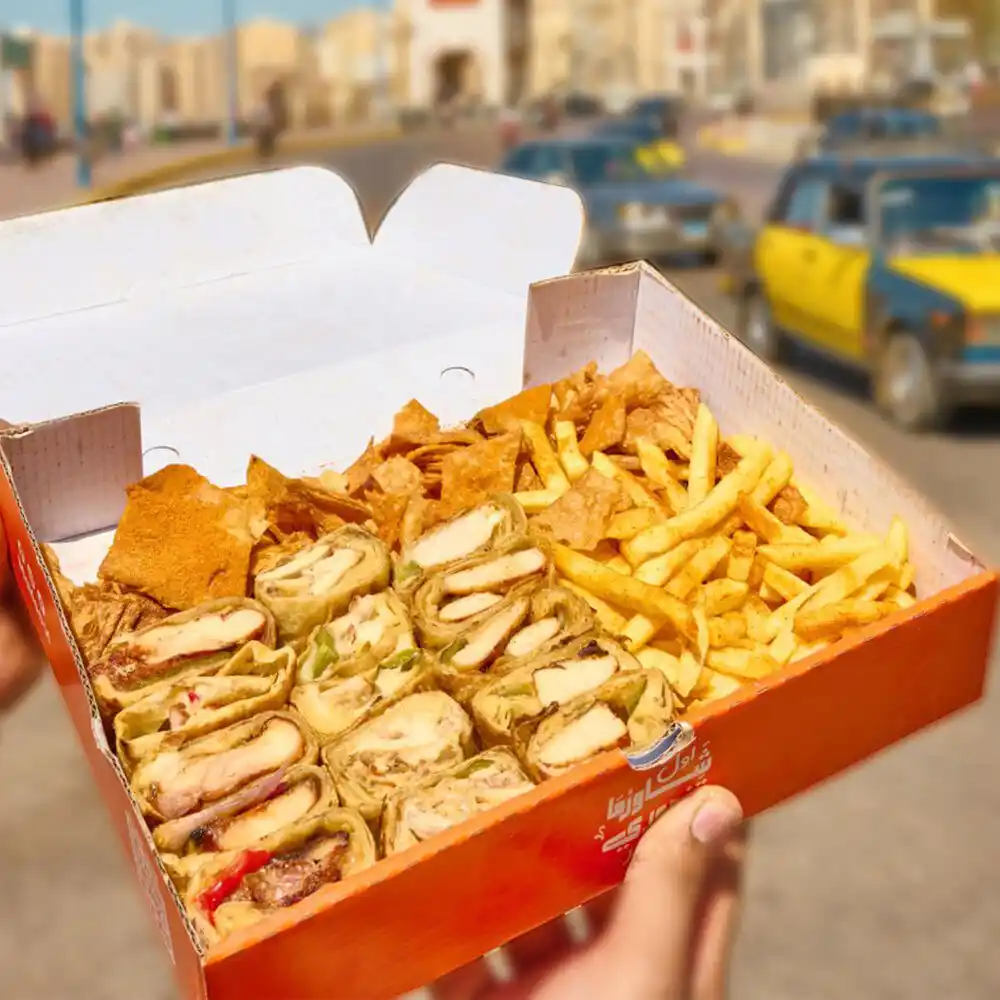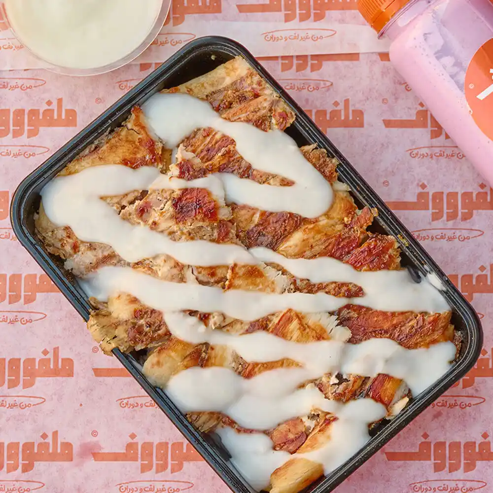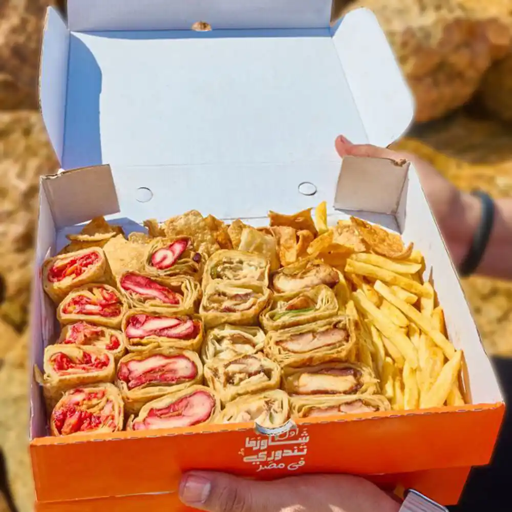 شاورما فراخ + بطاطس + شيش طاووق + جبنة موزريلا + صوص ايلاند