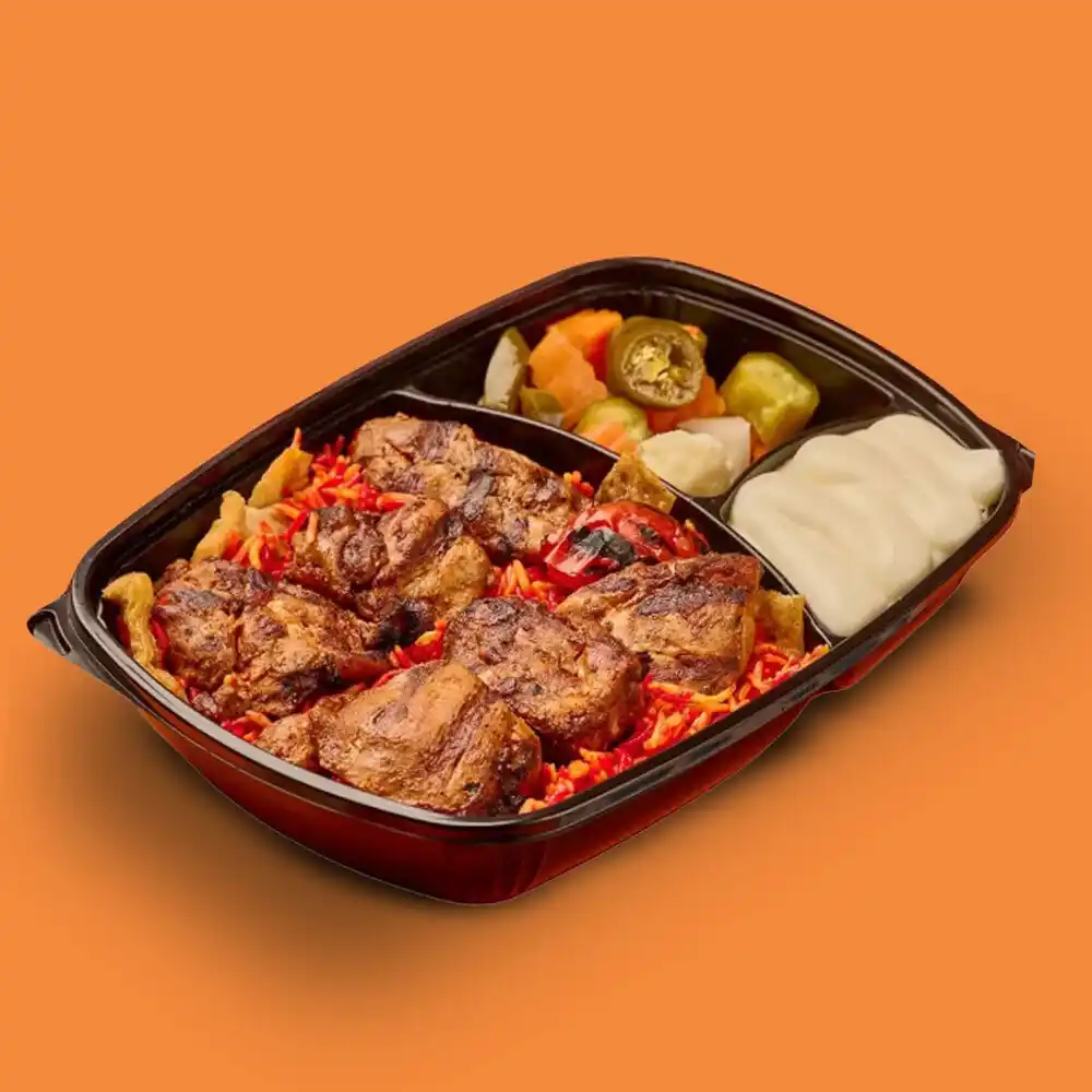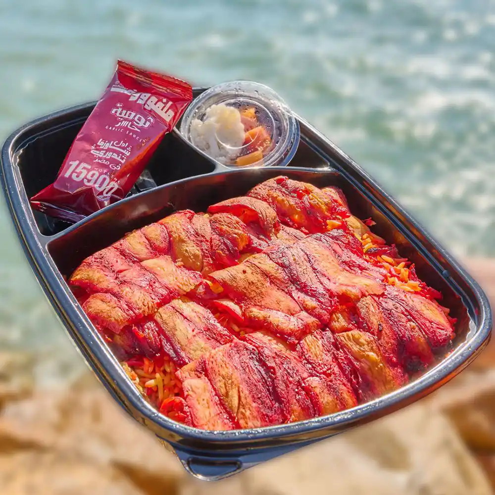 6ق تقدم مع أرز + عيش + مخلل + صوص