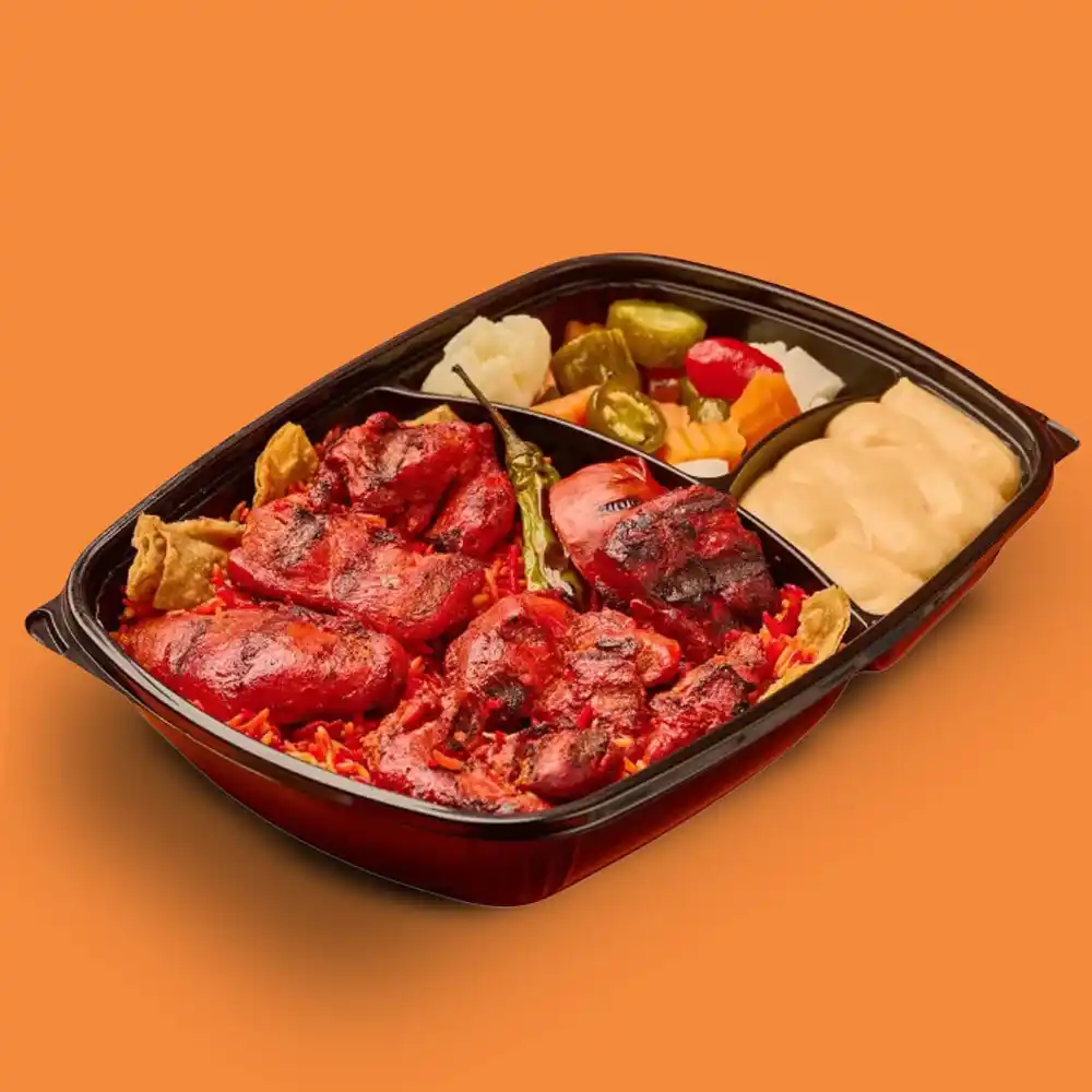 10 قطع (شاورما تندوري / شيش تندوري / شاورما لحمة) + بطاطس + بيج كولا + عيش محمص + ثومية + مخلل