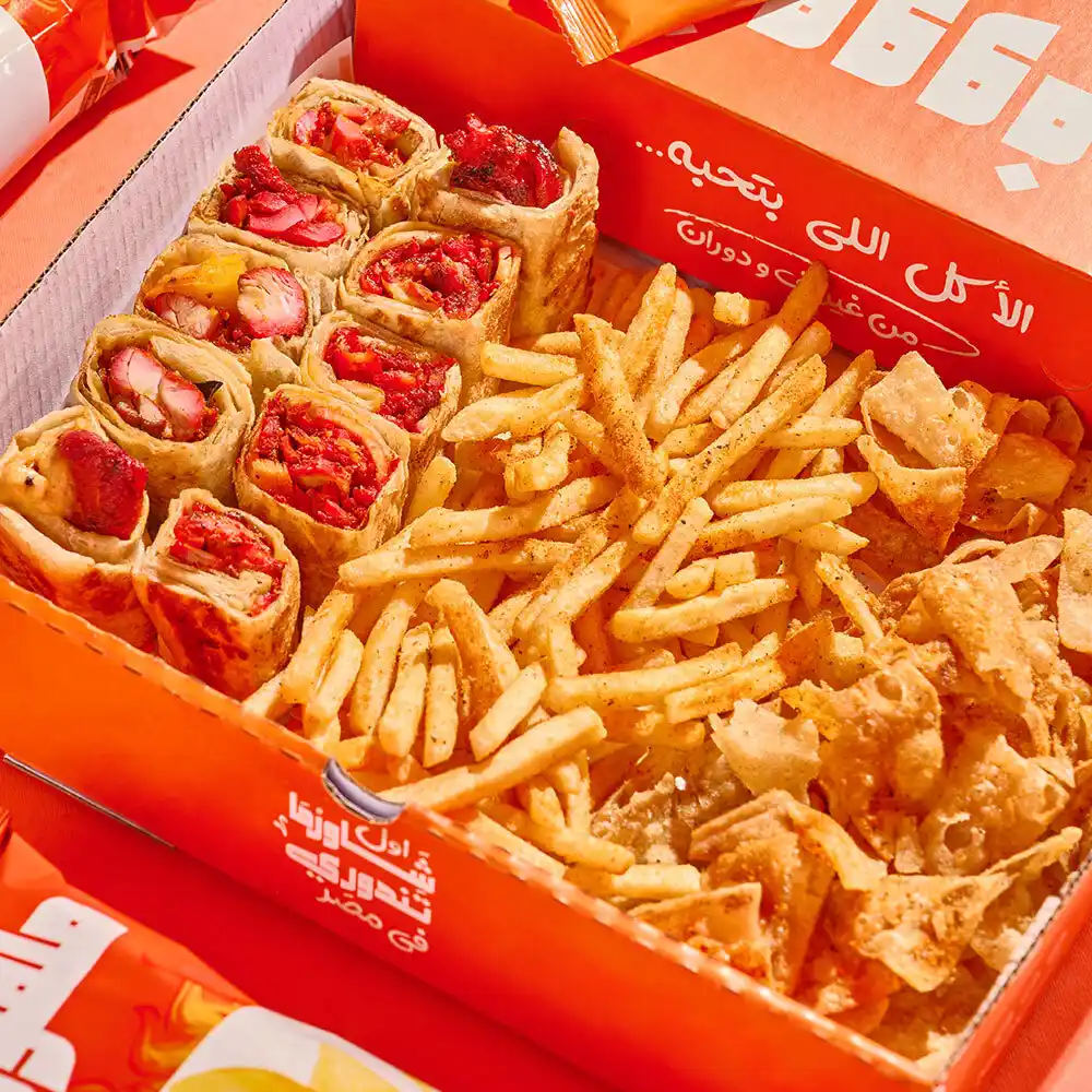 20 قطعة من اختيارك + بطاطس + + 2 صوص + مخلل عيش محمص